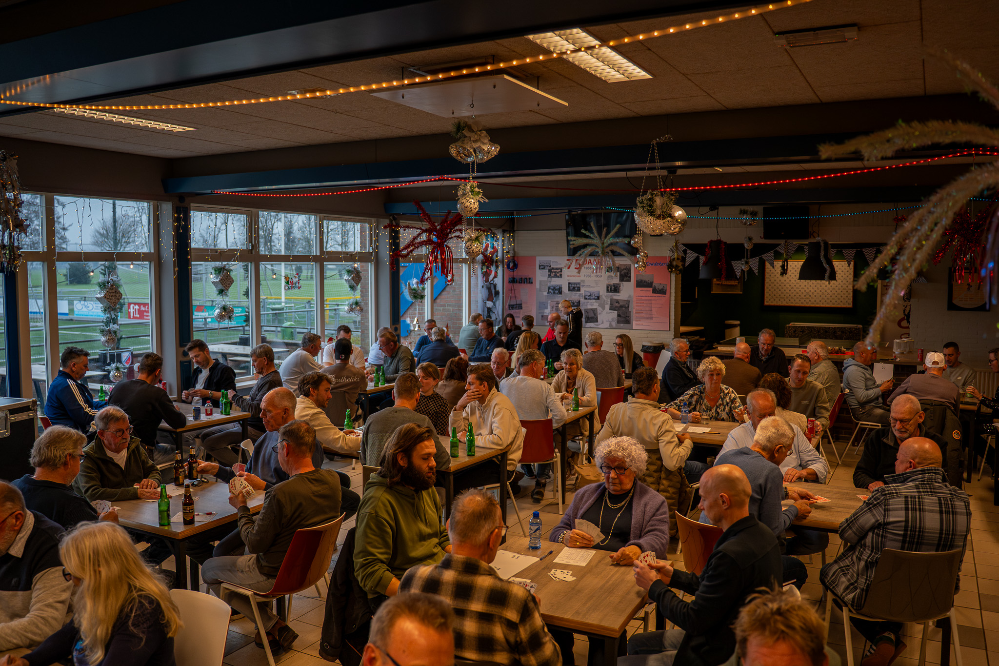 De laatste zaterdag van 2025 dat de kantine bij Koudekerk open is, is altijd vaste prik: koppelklaverjassen en natuurlijk het traditionele kerstrad. Dit jaar kreeg de avond extra sfeer dankzij de livemuziek van Piano&Pils.